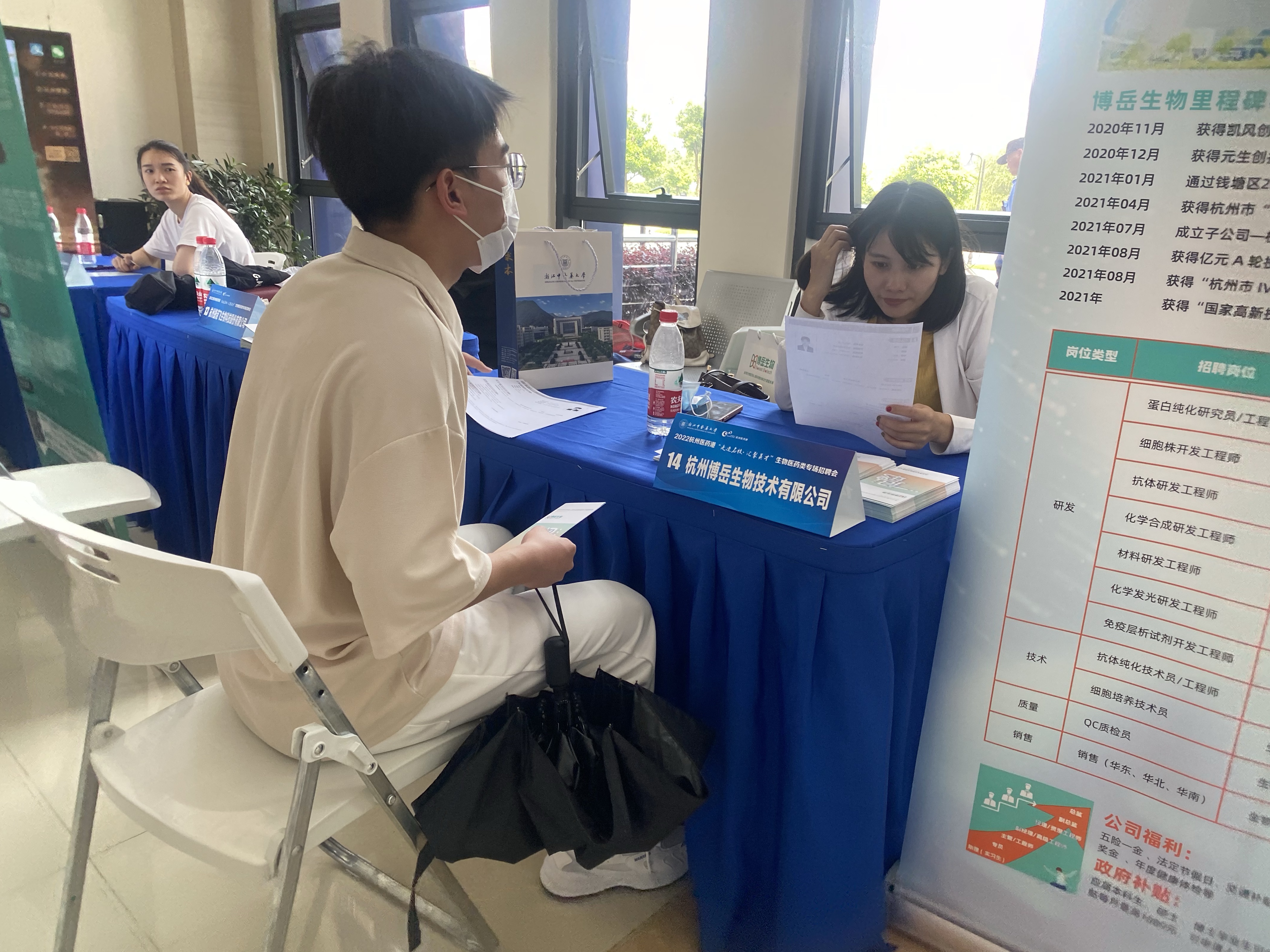 会后,200余位毕业生和高年级学生参加了由学工部牵头组织的“百日冲刺促就业”杭州医药港生物医药类专场招聘会。