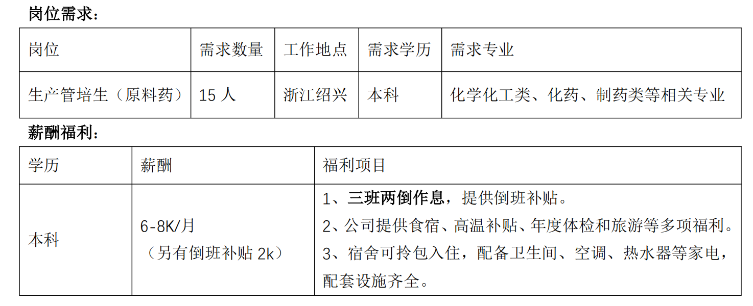 1、本科及以上学历,专业知识扎实,能吃苦耐劳,热爱医药行业;